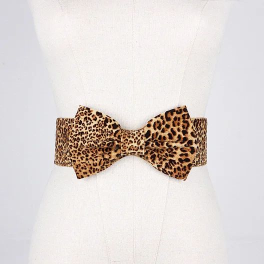 2019 Fashion Leopard Wide Bowknot Belt for Women PU Leather Elastic Band Buckle Free Corset Waist Belts Ladies Dress Cummerbunds