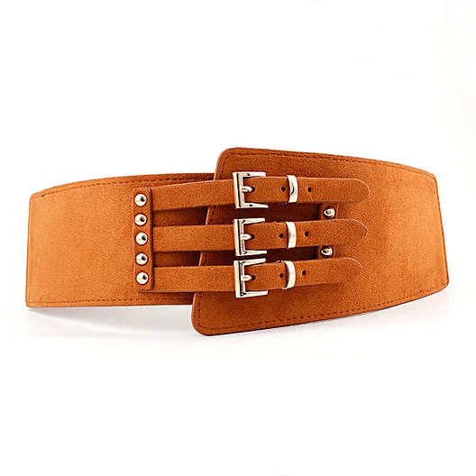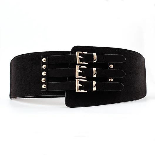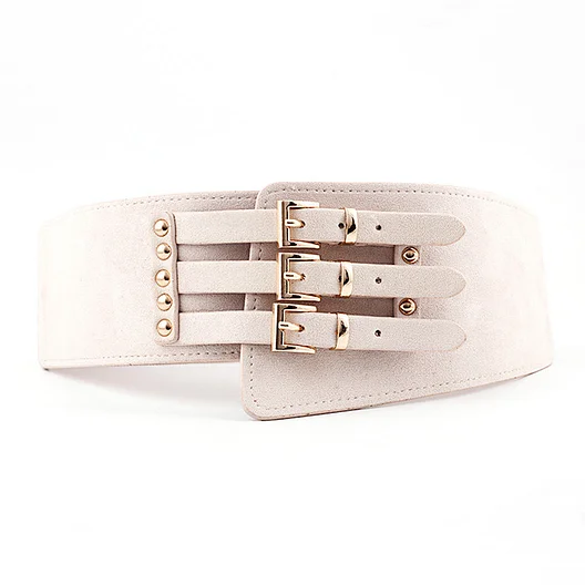2019 Luxury Leopard Wide Elastic Belt for Women Three Metal Pink Buckle Waistband Cummerbunds PU Leather Belts Ladies Cinturon
